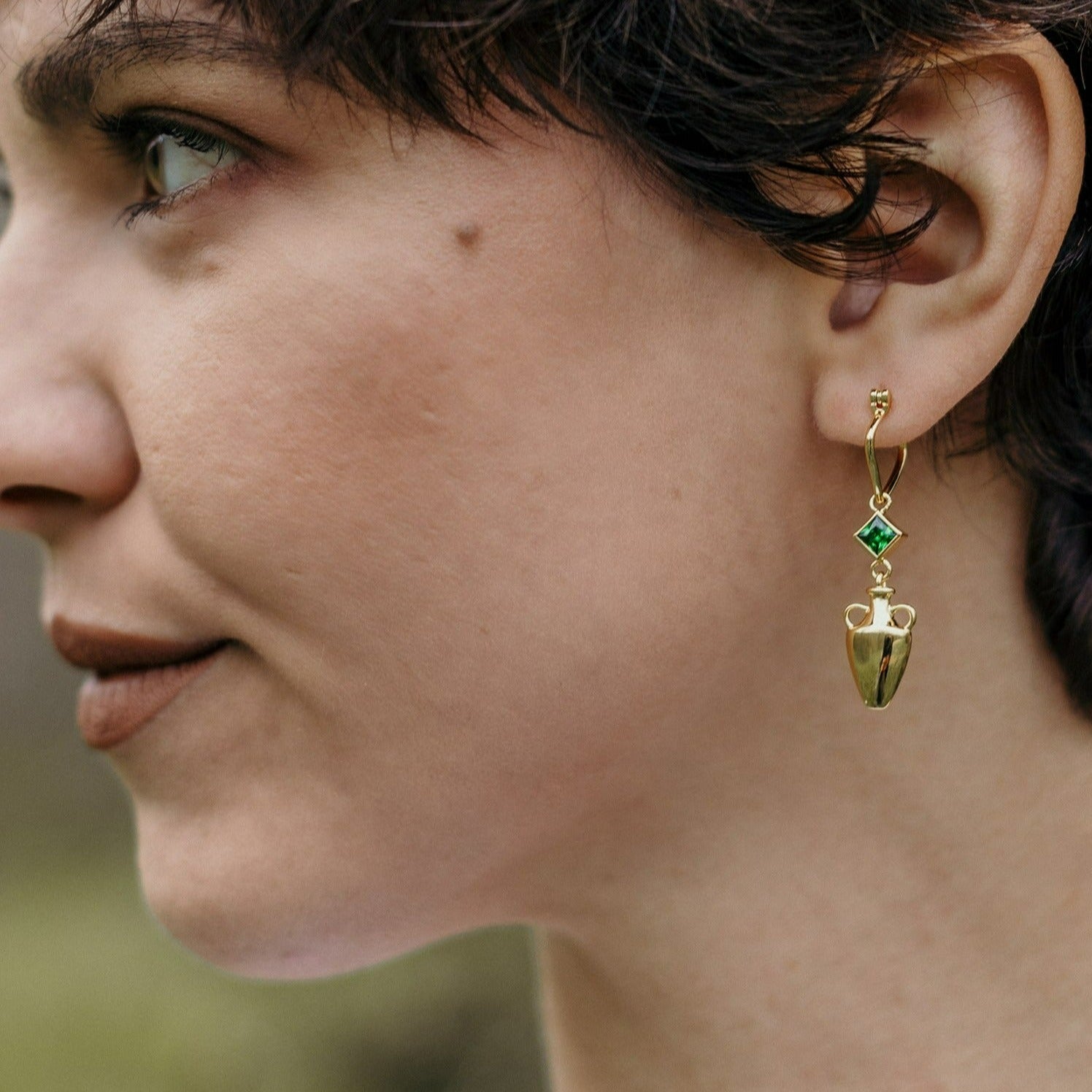 The Amphora dangles have the same charm that we love about the Amphora pendant, now in an elegant drop-dangle variation to wear on your ears! They have a perfect weight to them, and we made sure to include closing latch hooks to hold them secure on the ear. You will be delighted with how comfortable they are for everyday wear!