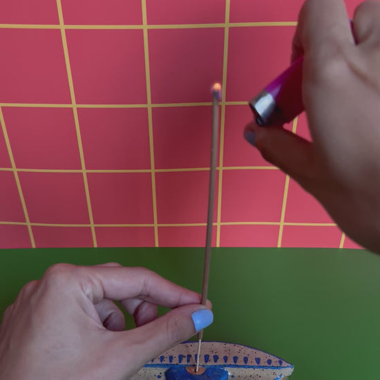 Banish negative energy in style with this sleek evil eye incense burner. Featuring a contemporary design wrapped in moody blues and warm earth tones, it's the perfect blend of spiritual protection and modern aesthetics!